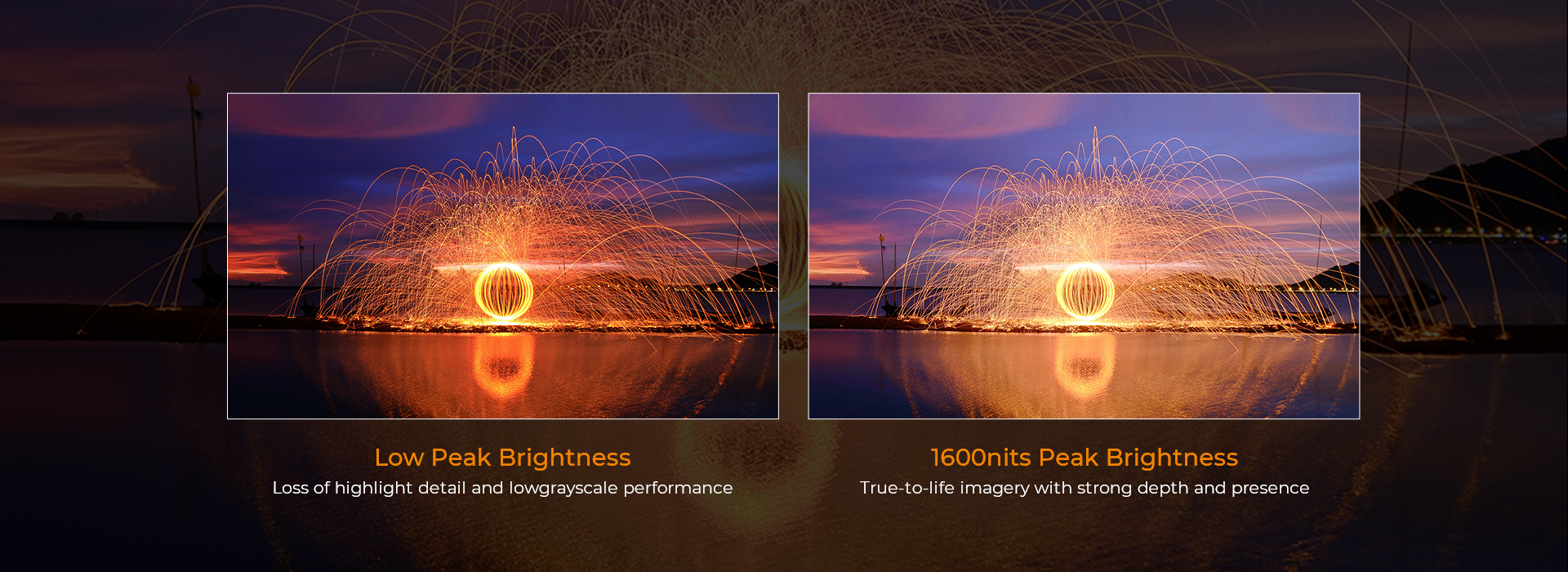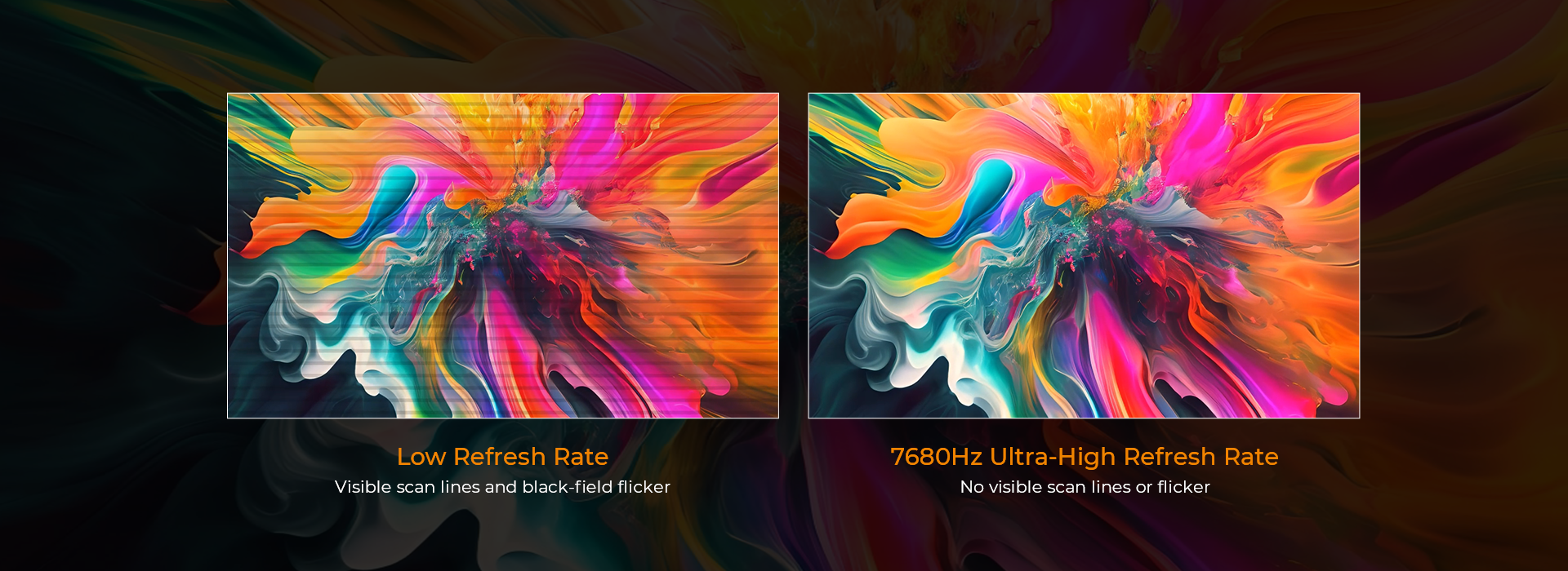 The combination of 22-bit ultra-high grayscale and PWM+PAM hybrid drive technology enables smooth, precise transitions across color and brightness levels. It eliminates visible banding, layering, and abrupt transition jumps, ensuring every gradient appears natural, continuous, and visually cohesive across the entire image.