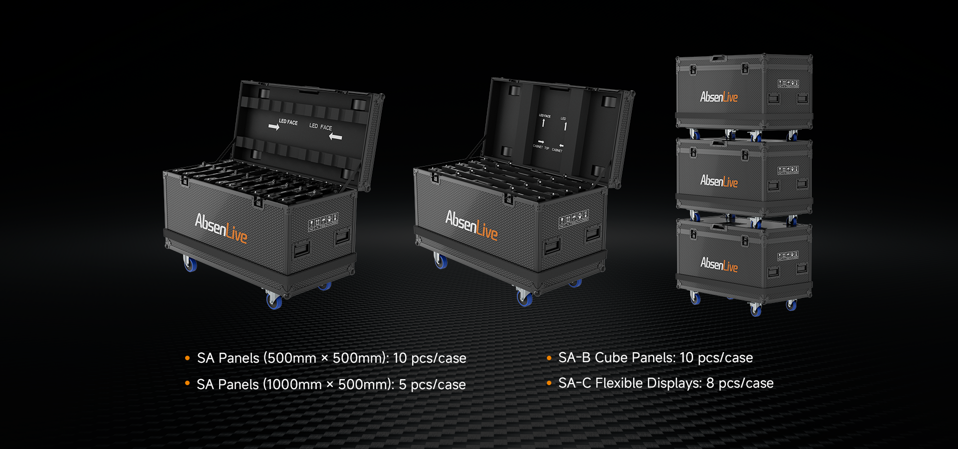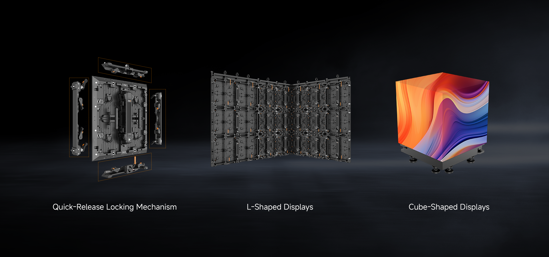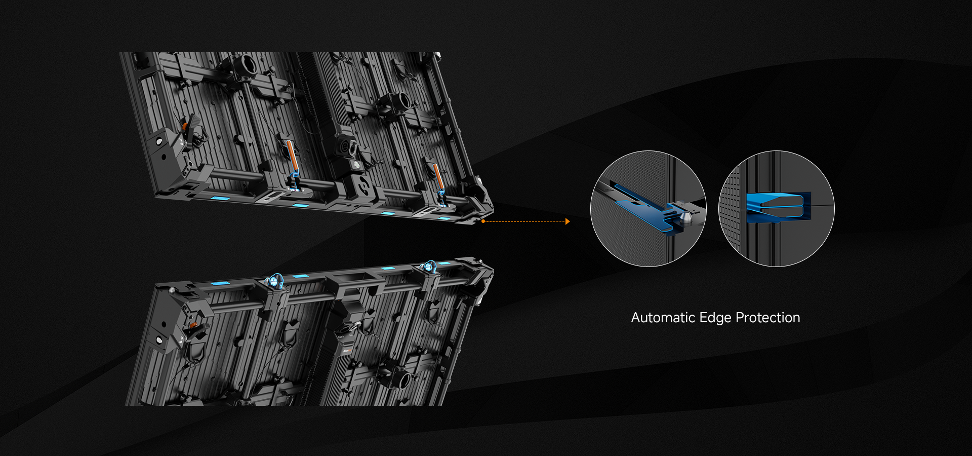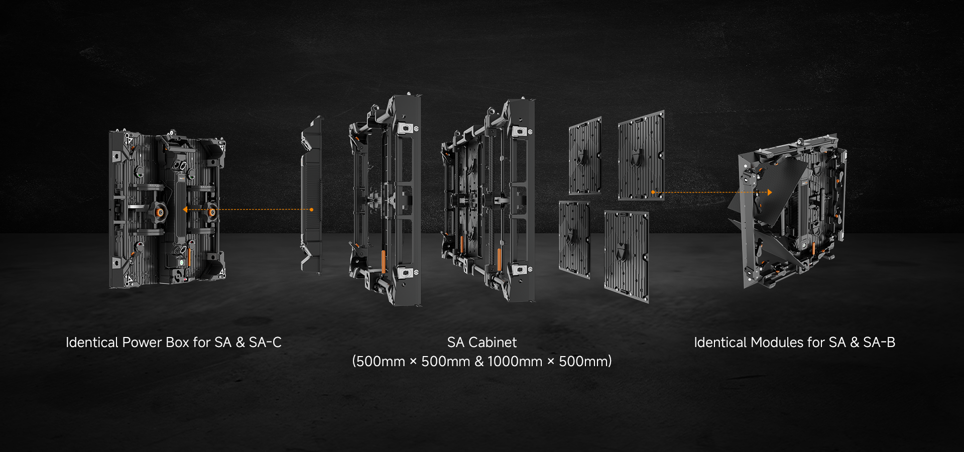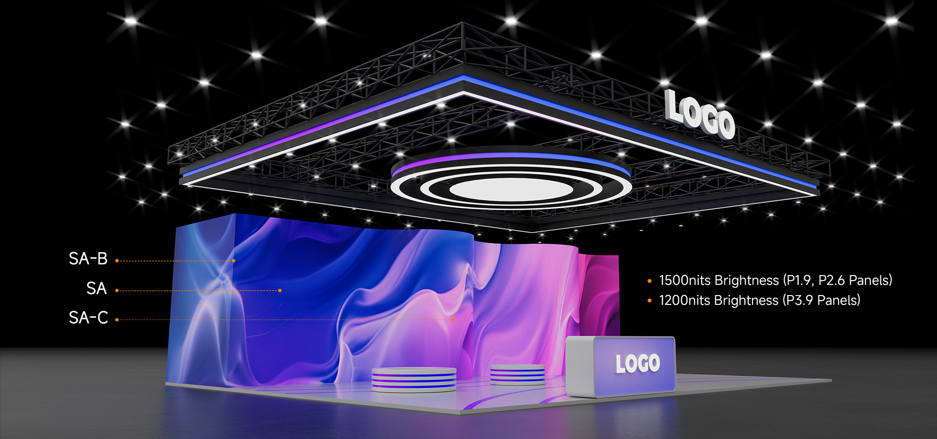 The Saturn-C (SA-C) flexible displays enhance creative freedom with a precision gear transmission mechanism, allowing easy adjustments of each panel from -30° to +30° in 1.25° increments. This enables the effortless creation of seamless curves, S-shapes, and cylinders starting from a 1.91-meter diameter (12 panels). When paired with SA panels, these displays open up even more possibilities for innovative stage design.